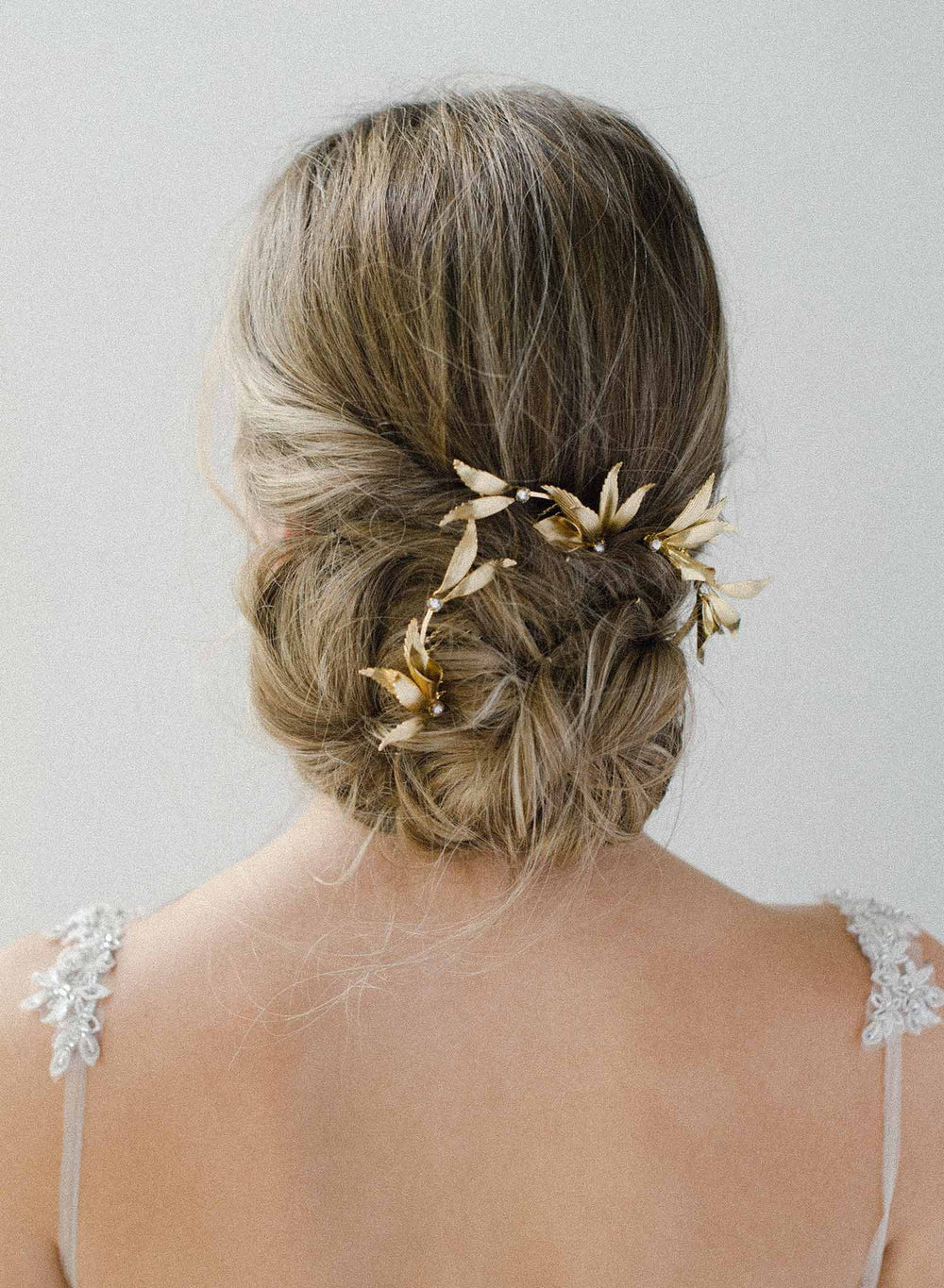 Twigs & Honey 2025 Hair Pins are a glamorous set of gold plated combs! Set with crystals, these pins can be scattered throughout your hair for a customizable look or even divided and given to bridesmaids!