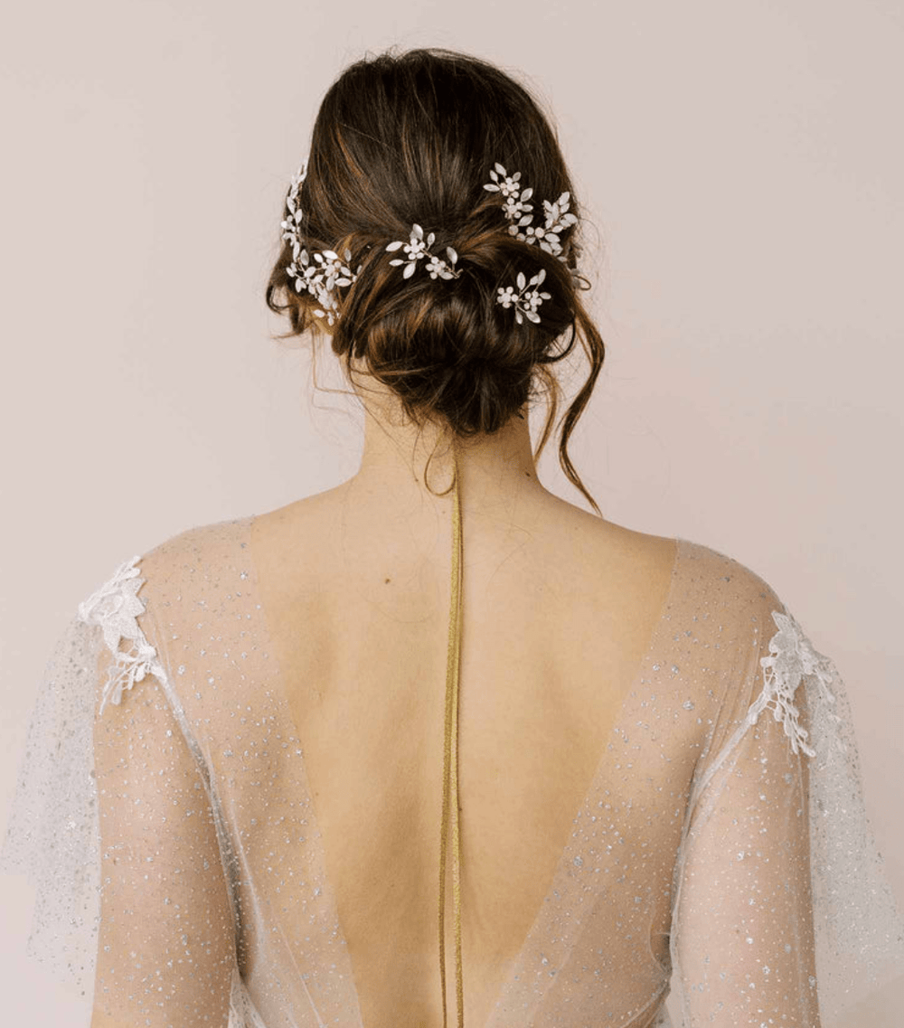 Twigs & Honey 2116 Hair Pins are a romantic set of four floral pins! Crystals + moonstones craft these delicate pieces, that can be added to any updo.