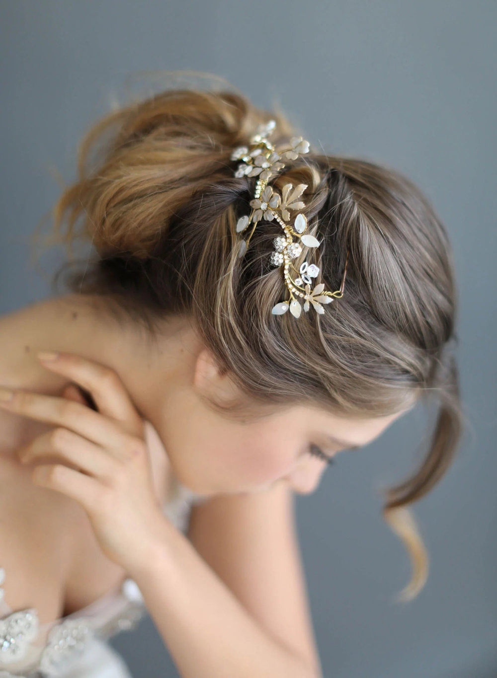 Twigs & Honey 658 Headpiece is a romantic piece featuring hand-painted charms set with crystals + beads! This is the perfect floral accent for your big day.