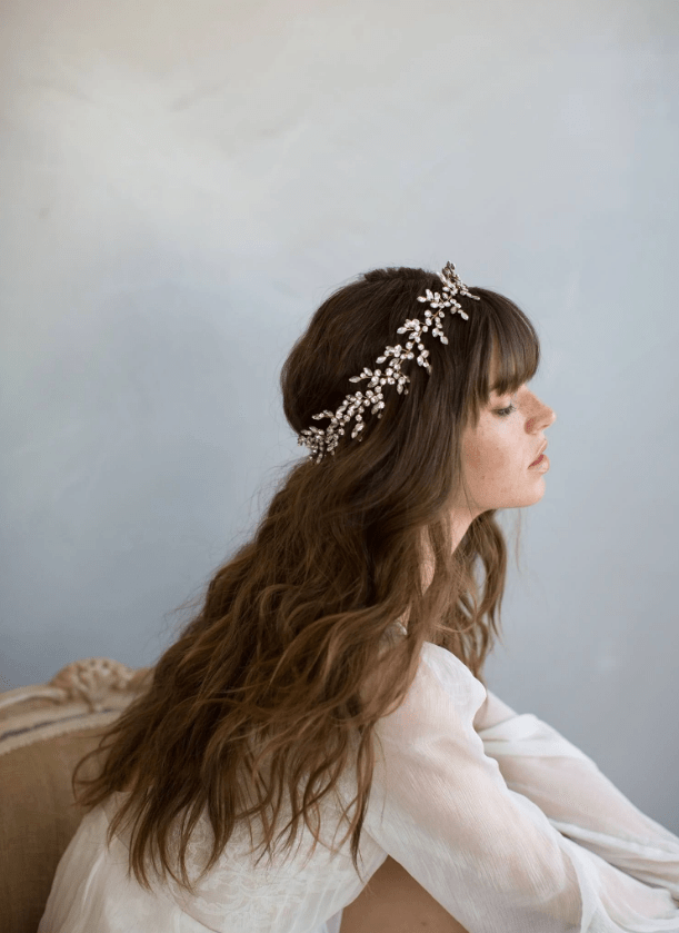 Twigs & Honey 798 Headpiece is a showstopper of a piece made entirely of hand wired + applied crystals. This piece is lightweight + dazzling, catching the light + sparkling everywhere it goes!