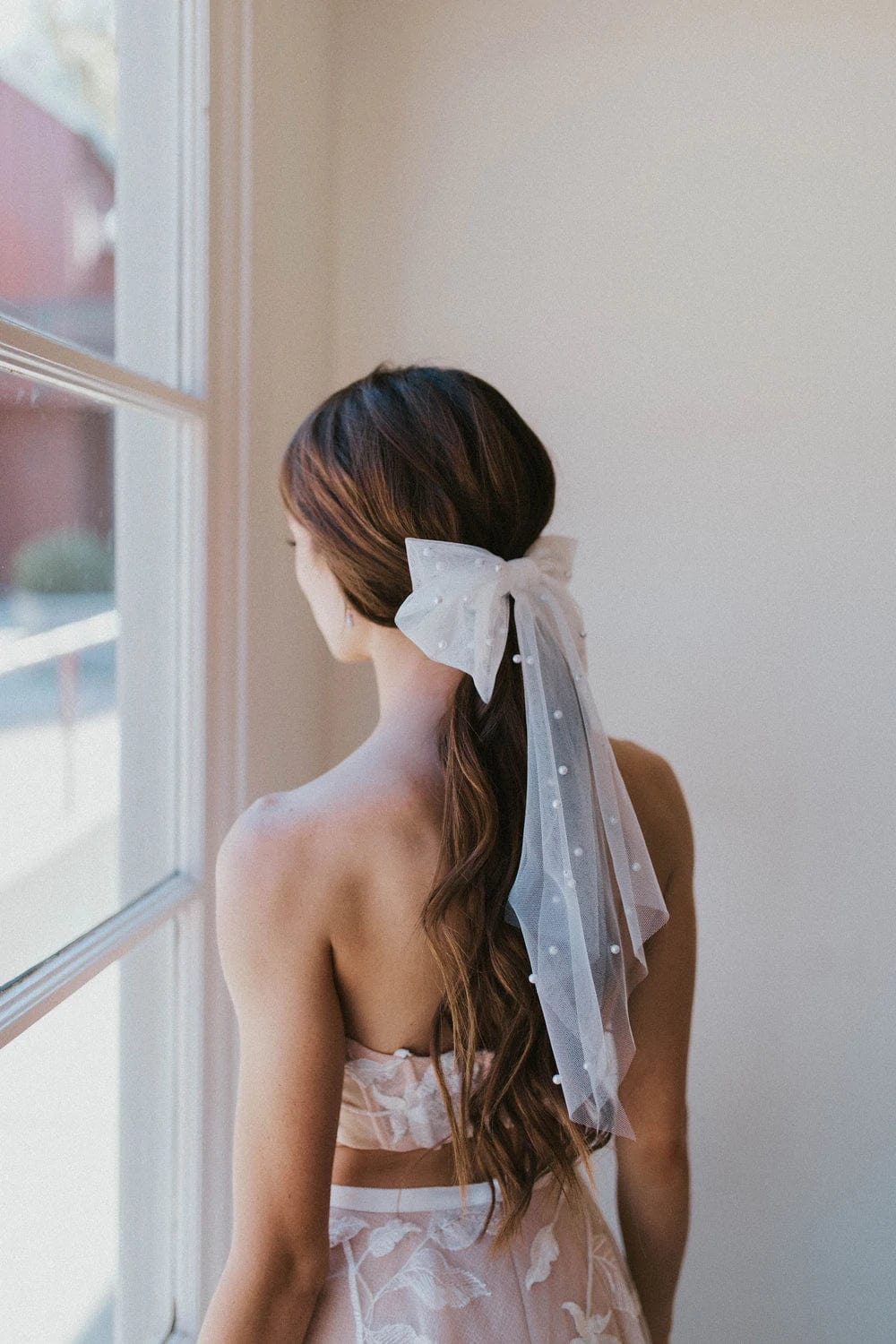 Untamed Petals Penelope Pearl Bow is the cutest oversized tulle bow adorned with pearls! This piece can be used as a veil alternative, for your bridal event, or to add a little something extra on date night! Untamed Petals Penelope Pearl Bow is Ivory in color and is one size.