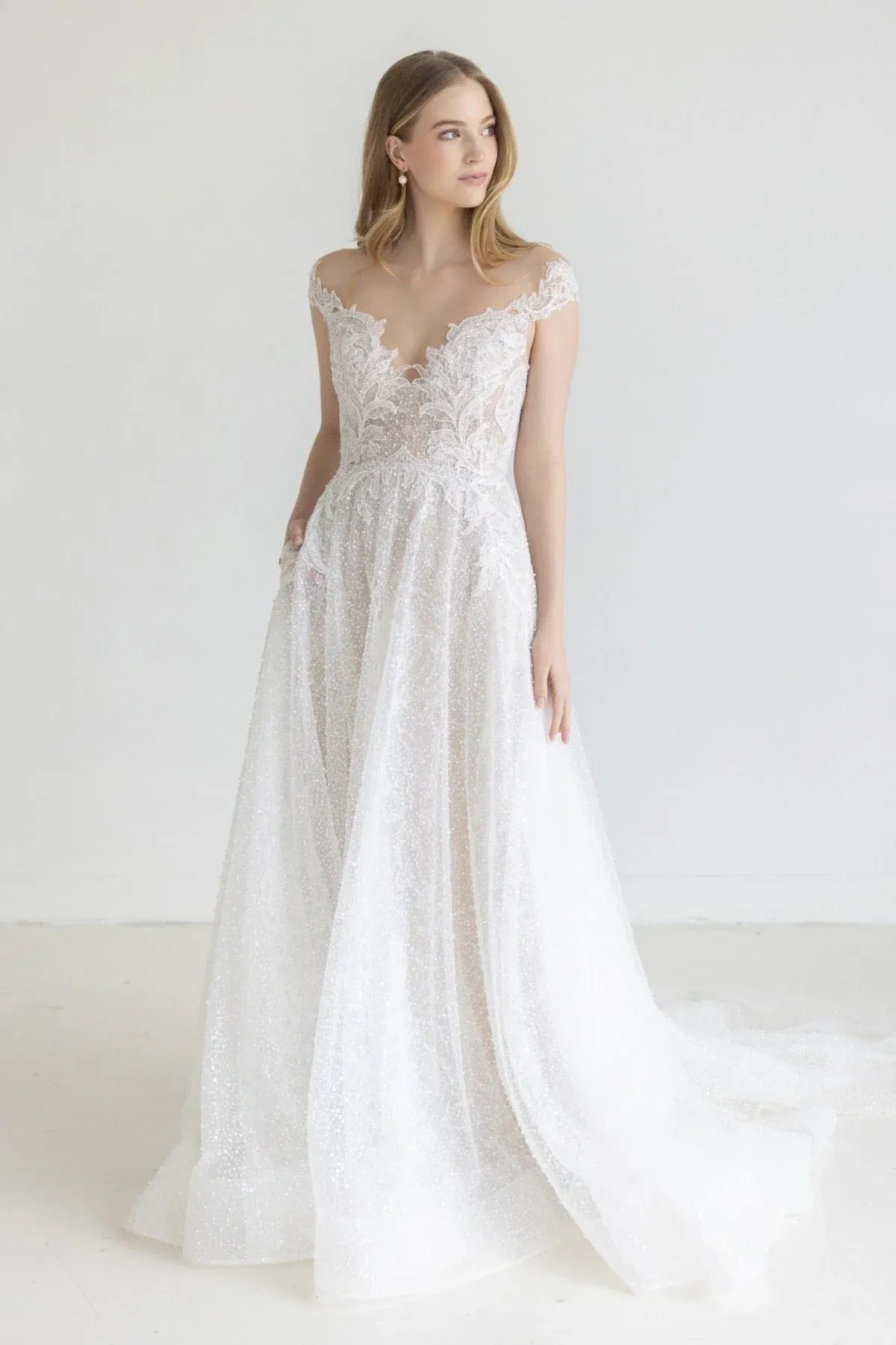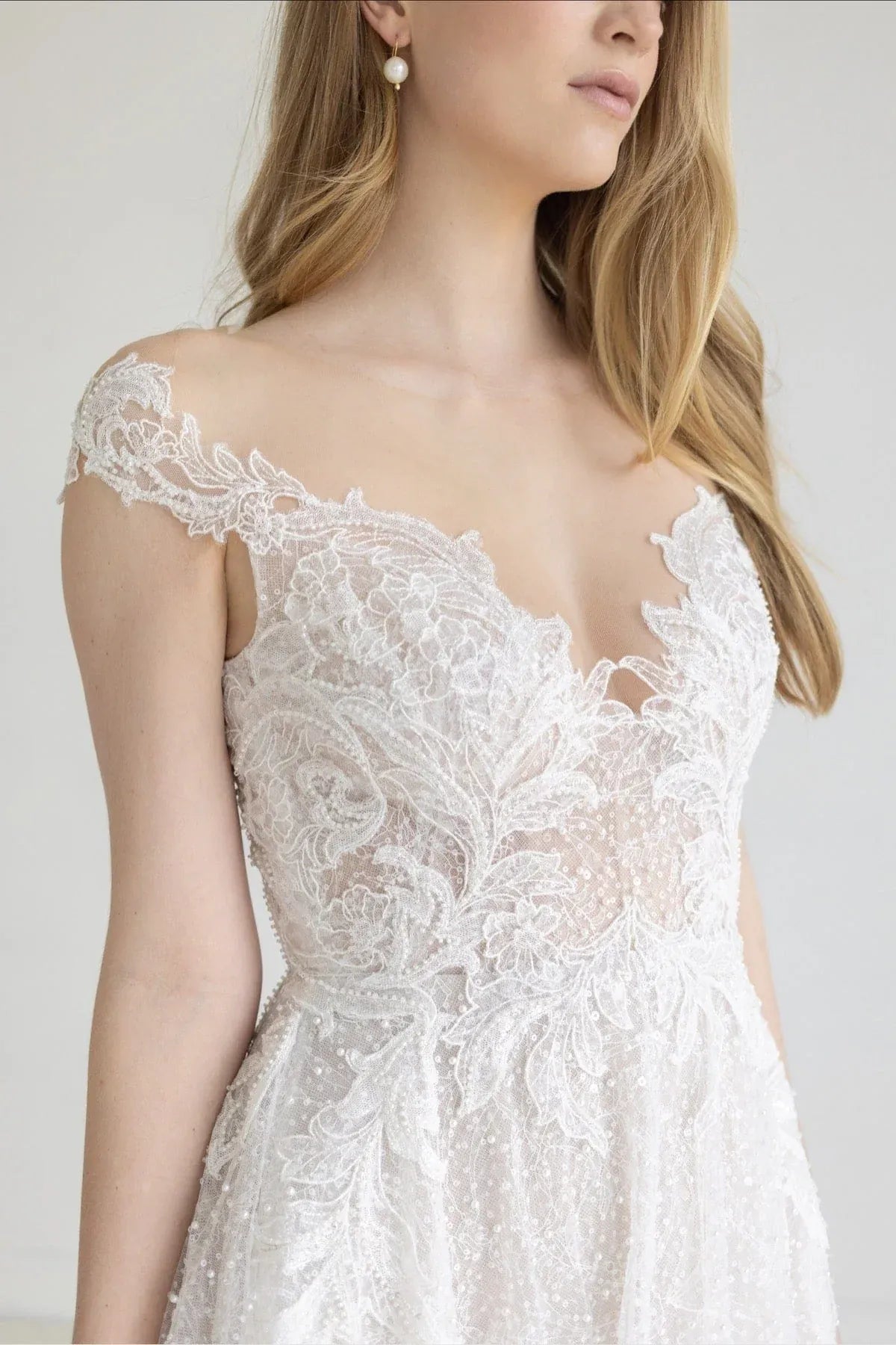 Our gowns haven't been worn down the aisle, but they may have been tried on by brides who chose a different dress. We hold our samples to high standards, though some may need a little extra love, like a loose button or a broken zipper - small fixes that a skilled seamstress can easily handle. Those minor imperfections mean major discounts! While we do our best to keep gowns in pristine condition, wear and tear can occur during try on. If you're interested in this style, please do not hesitate to text or email us for more details or additional photos before saying YES!