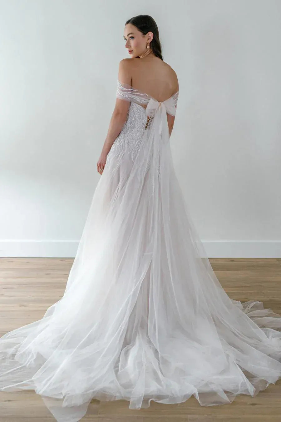 Our gowns haven't been worn down the aisle, but they may have been tried on by brides who chose a different dress. We hold our samples to high standards, though some may need a little extra love, like a loose button or a broken zipper - small fixes that a skilled seamstress can easily handle. Those minor imperfections mean major discounts! While we do our best to keep gowns in pristine condition, wear and tear can occur during try on. If you're interested in this style, please do not hesitate to text or email us for more details or additional photos before saying YES!