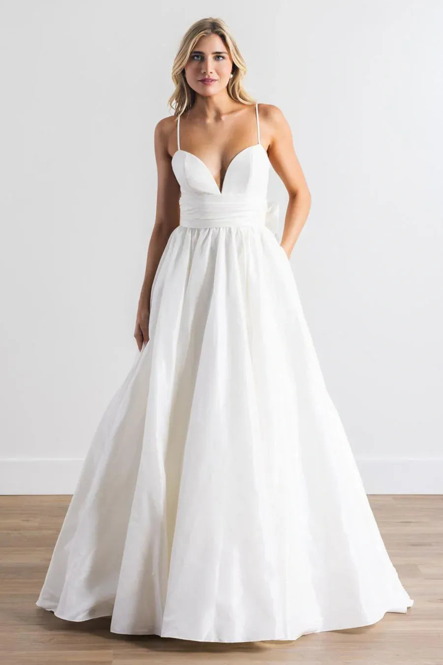 WTOO Sapphie is a dreamy taffeta A-line wedding dress featuring a cummerbund waist + bow at the back! This gown comes to us in great condition from a designer boutique. WTOO Sapphie is Ivory in color and a size 10.