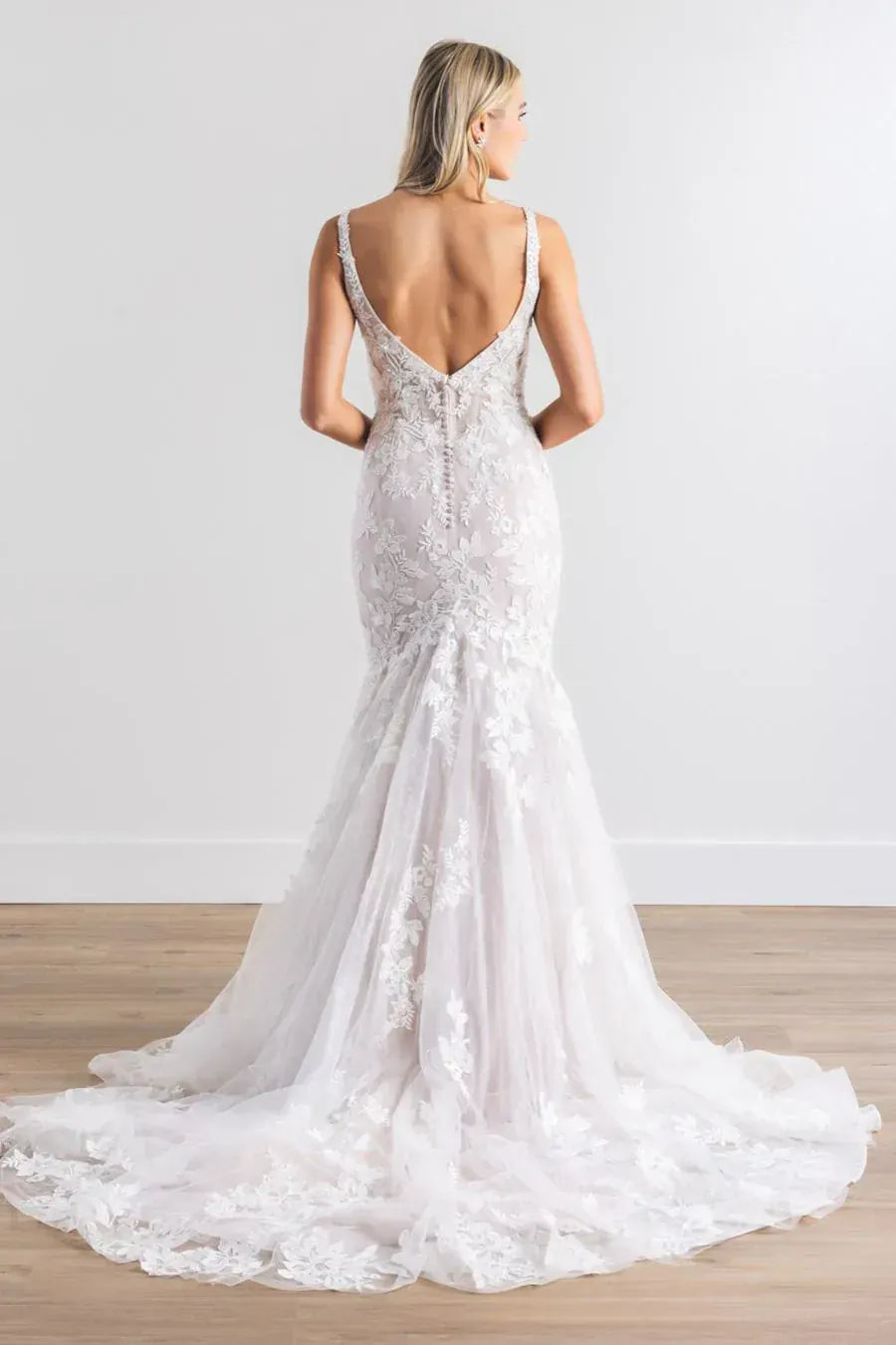 Our gowns haven't been worn down the aisle, but they may have been tried on by brides who chose a different dress. We hold our samples to high standards, though some may need a little extra love, like a loose button or a broken zipper - small fixes that a skilled seamstress can easily handle. Those minor imperfections mean major discounts! While we do our best to keep gowns in pristine condition, wear and tear can occur during try on. If you're interested in this style, please do not hesitate to text or email us for more details or additional photos before saying YES!