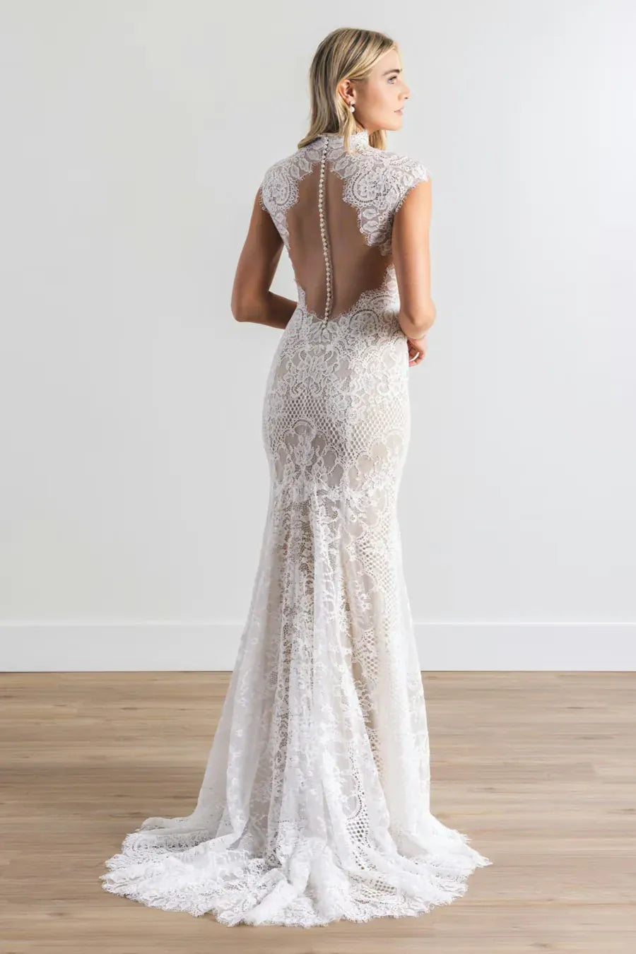 Our gowns haven't been worn down the aisle, but they may have been tried on by brides who chose a different dress. We hold our samples to high standards, though some may need a little extra love, like a loose button or a broken zipper - small fixes that a skilled seamstress can easily handle. Those minor imperfections mean major discounts! While we do our best to keep gowns in pristine condition, wear and tear can occur during try on. If you're interested in this style, please do not hesitate to text or email us for more details or additional photos before saying YES!