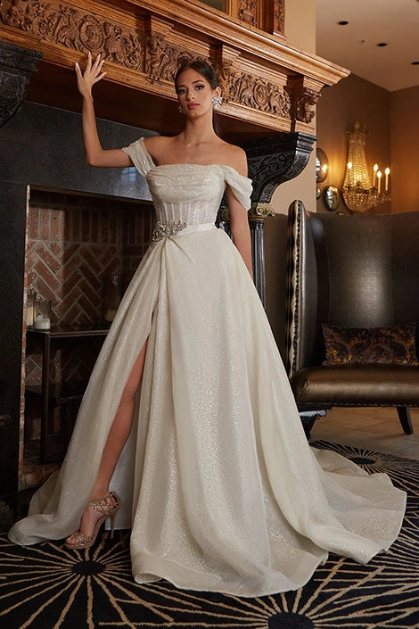 Yumi Katsura Orly is a sparkly tulle + organza ball gown featuring a high slit in the skirt + off-the-shoulder straps! This gown comes to us in great condition from a designer boutique. Yumi Katsura Orly is Buttercream in color and a size 12.